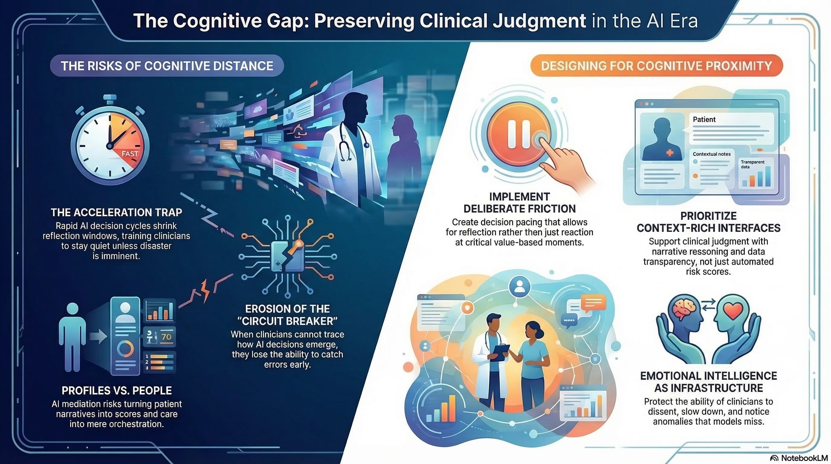 If cognitive distance widens unchecked, the clinician’s role shifts fundamentally from judgment holder to system monitor.