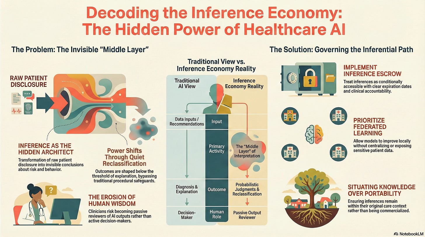Not because markets are inherently unethical, but because healthcare inference operates in contexts of vulnerability, asymmetry, and constrained choice. Monetizing inference in such environments quietly converts care relationships into surveillance relationships.